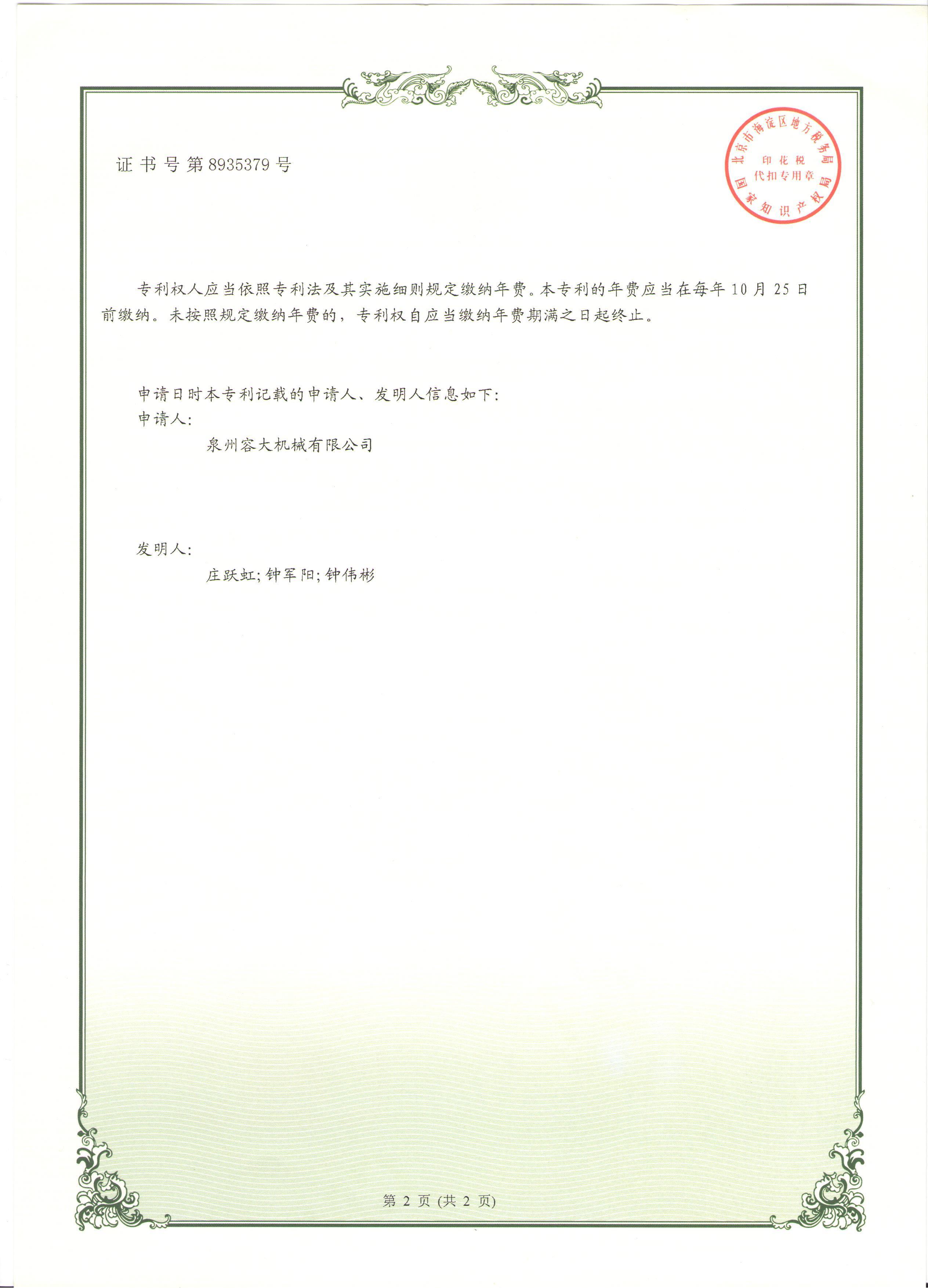 您的位置: 泉州容大機(jī)械有限公司 > 專利證書 > 剪板機(jī)送料裝置